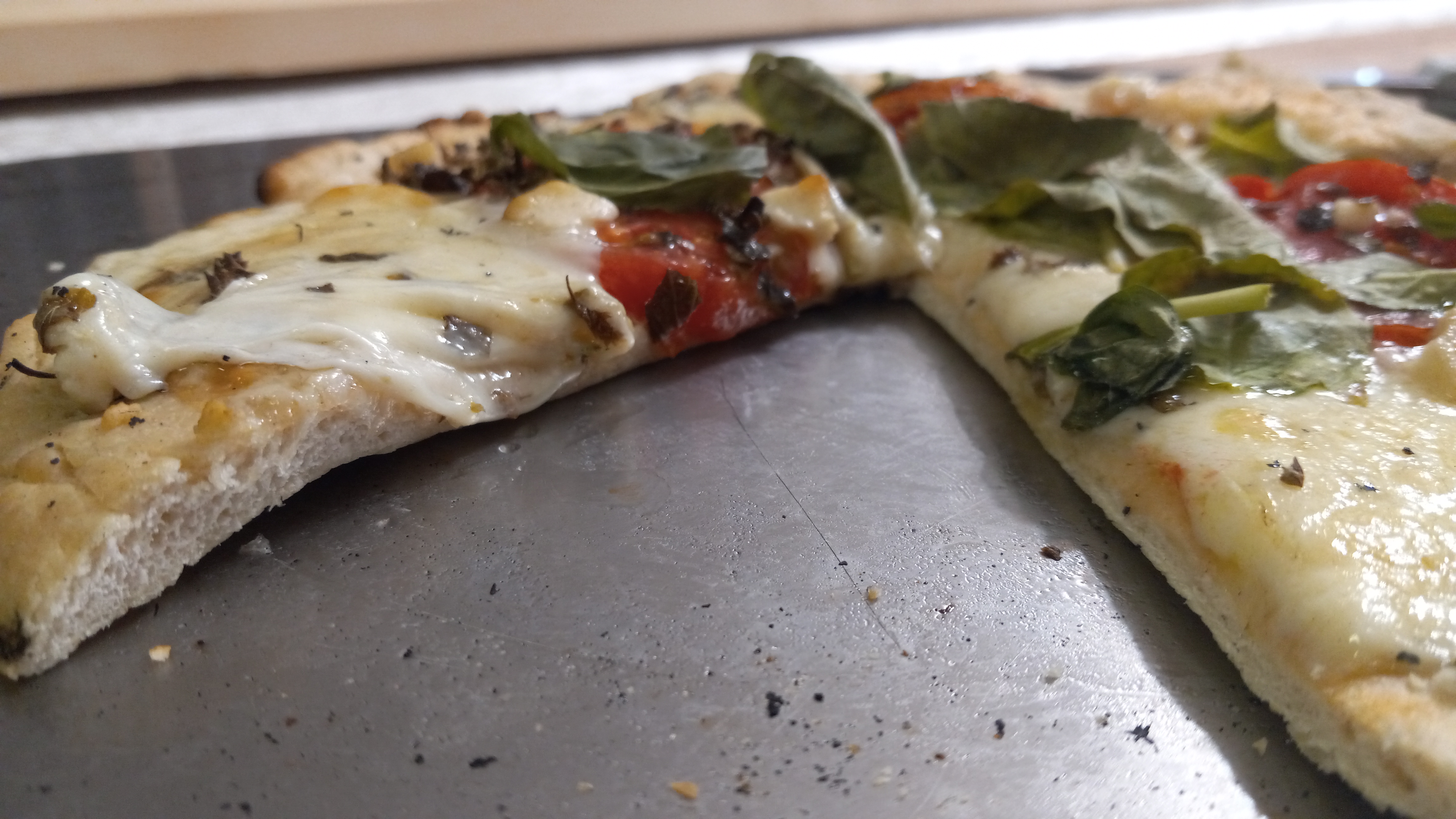 The ingredients list below is for 1 large pizza, but I usually double the amount so I can keep the remaining half of the dough in the fridge over night for a second large pizza for lunch.